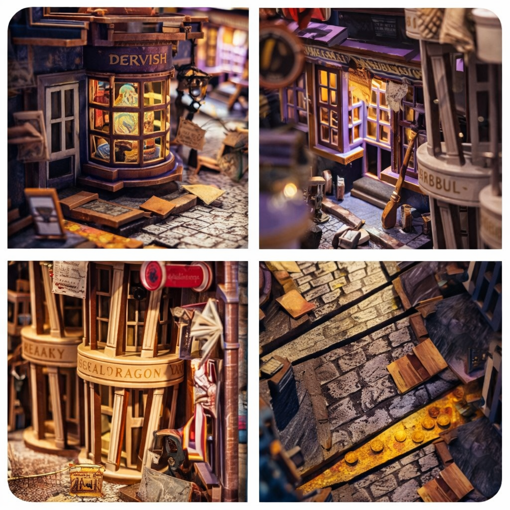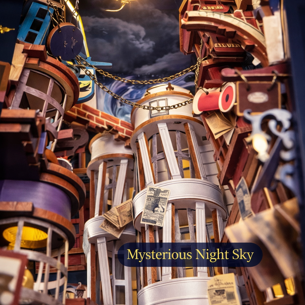 Bring home a handcrafted miniature alleyway, complete with glowing shop lights, charming hidden details, and cinematic depth that makes your bookshelf feel like a story come to life.