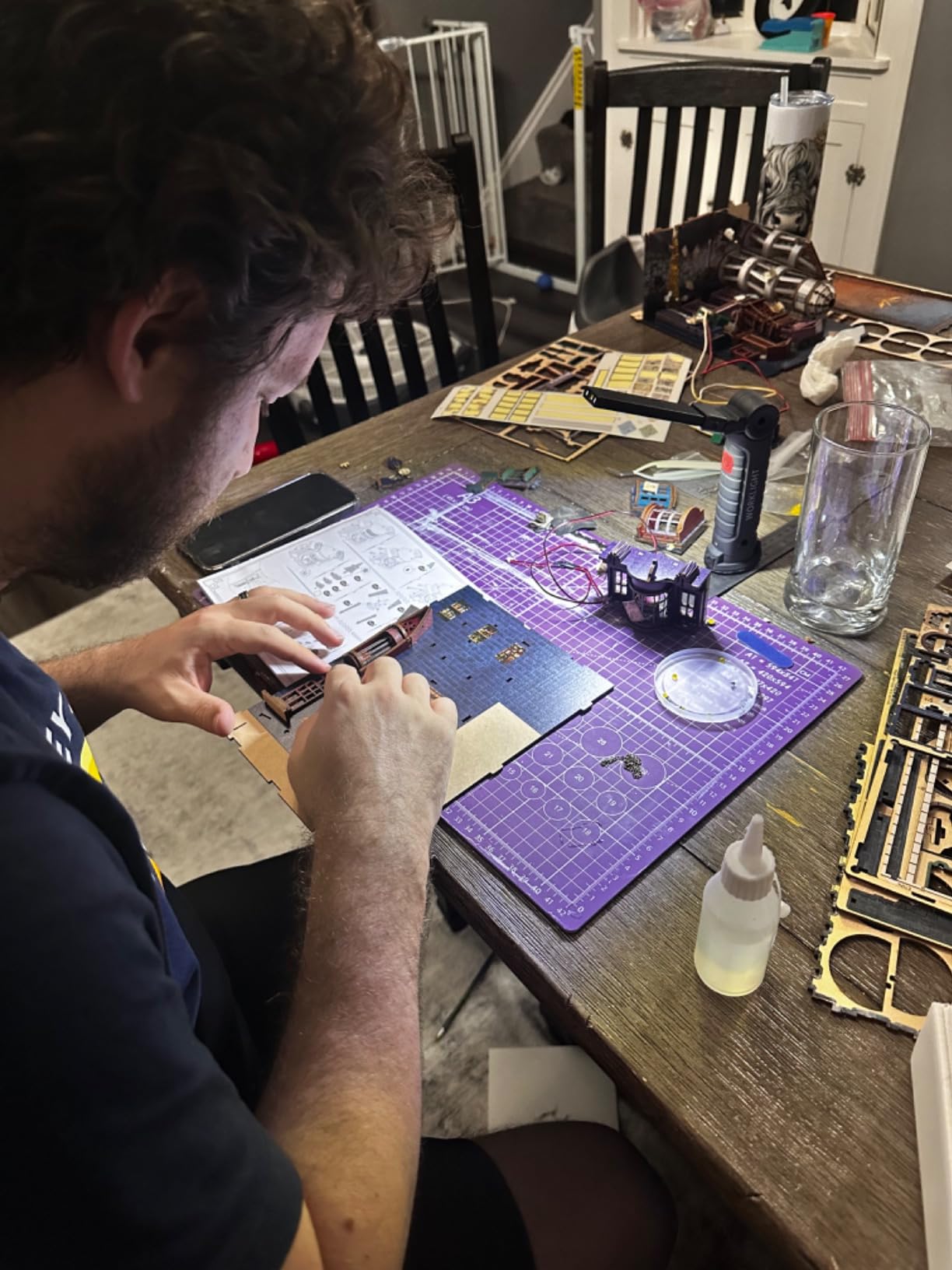 Simply assemble the pre-cut wooden pieces, slide them into the numbered slots, and glue the guided parts together.